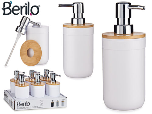 White dispenser with bamboo top