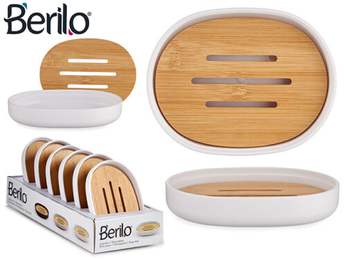 White soap dish with bamboo top