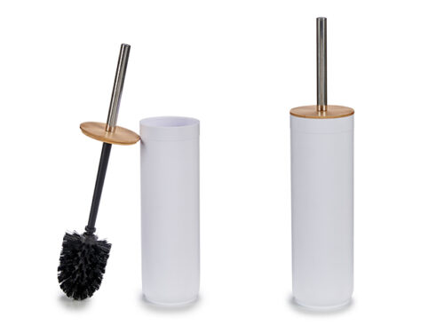 White toilet brush holder bamboo lid