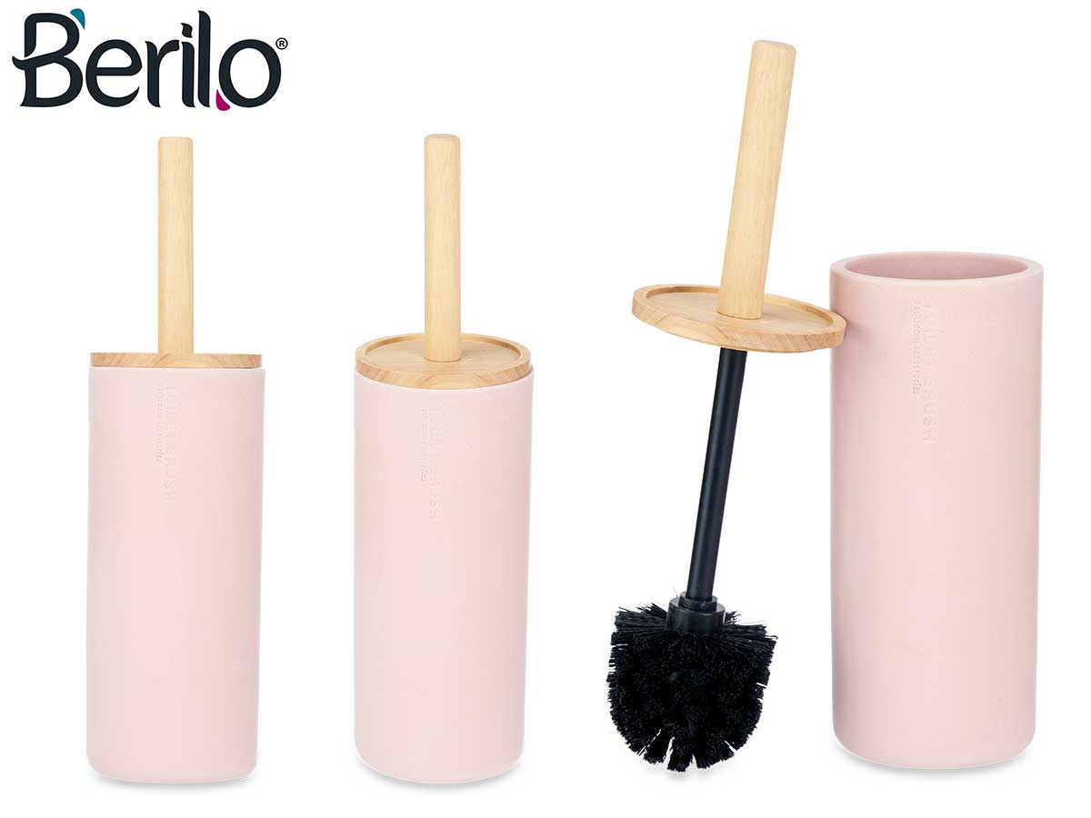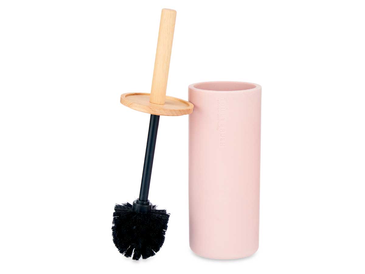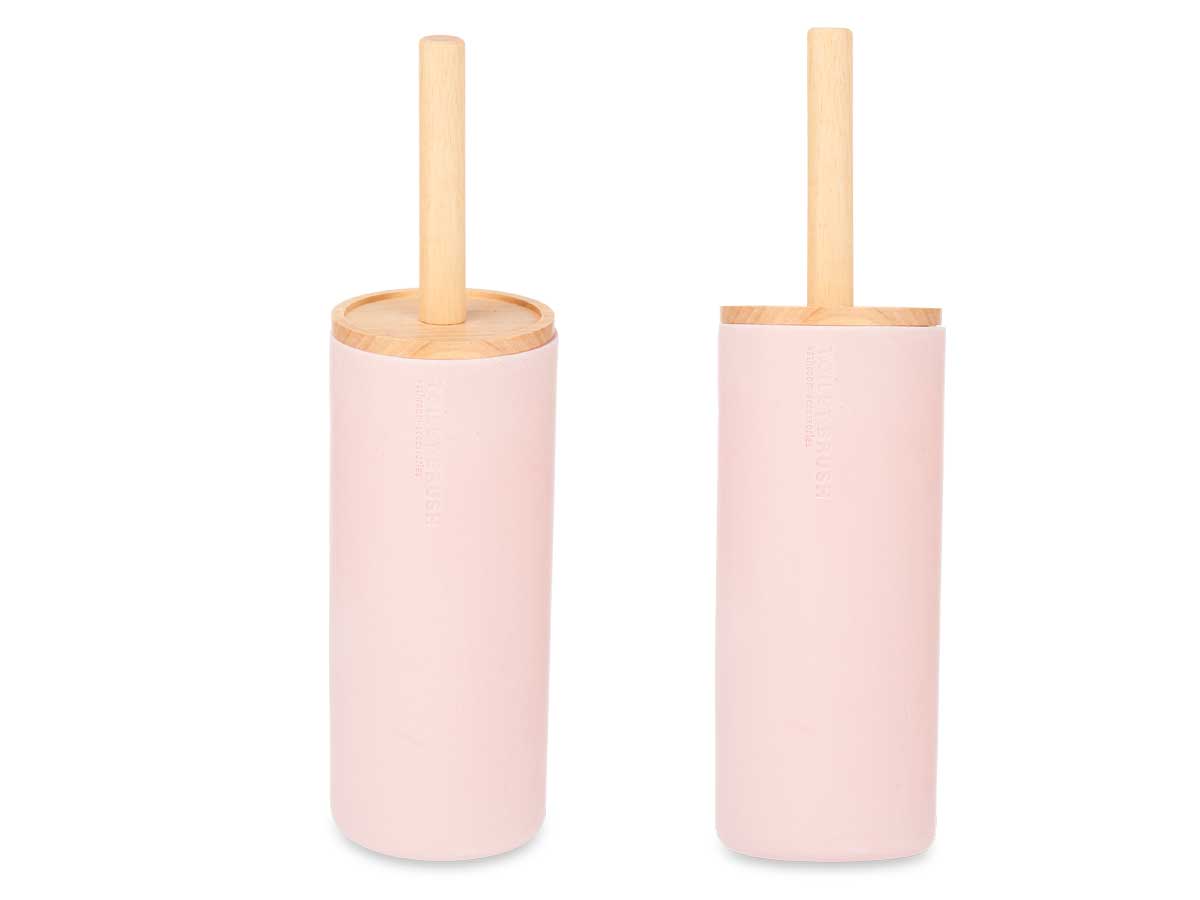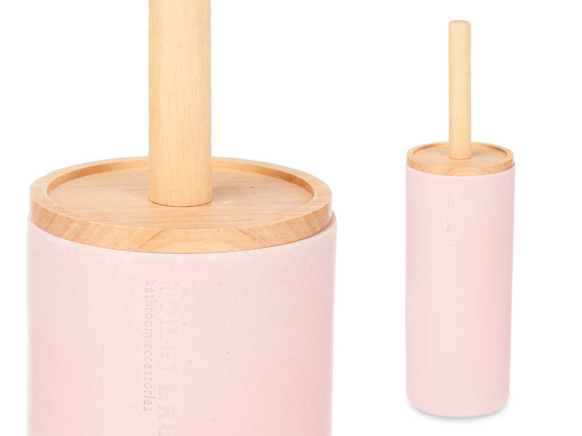 Brosse toilette résine haut couvercle bambou rose
