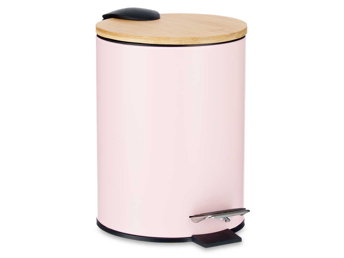 Poubelle métallique couvercle en bambou 3l rose